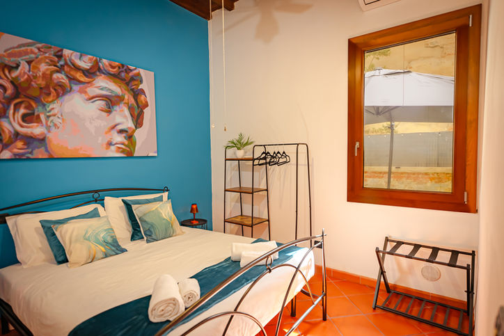 The apartment boasts three distinct double bedrooms, each connected to one of the city's most precious treasures. The David Room exudes strength and elegance, paying homage to the iconic sculpture by Michelangelo, while the Venus Room radiates beauty and grace, inspired by the timeless masterpiece of Botticelli. And don’t forget cozy Perseus!